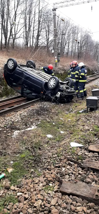 VIDEO | O mașină a căzut de pe un pod, la Predeal. Autoturismul a ajuns pe calea ferată