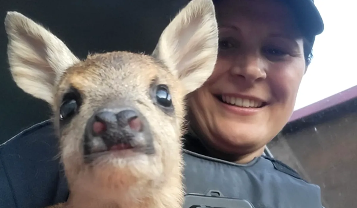 VIDEO | Operațiunea „Bambi”. Cum a ajuns să se ascundă într-o scară de bloc o căprioară speriată. A fost eliberată în pădure de către pompieri