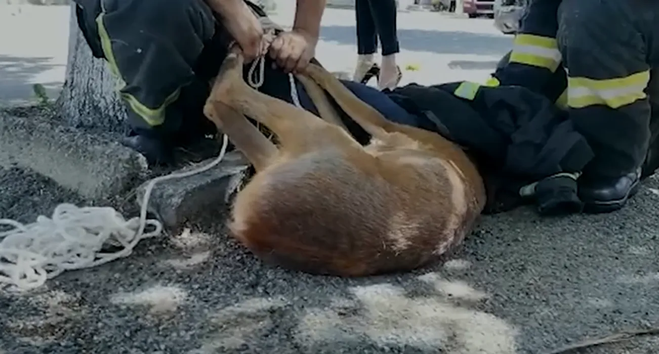 VIDEO | Operațiunea „Bambi”. Cum a ajuns să se ascundă într-o scară de bloc o căprioară speriată. A fost eliberată în pădure de către pompieri