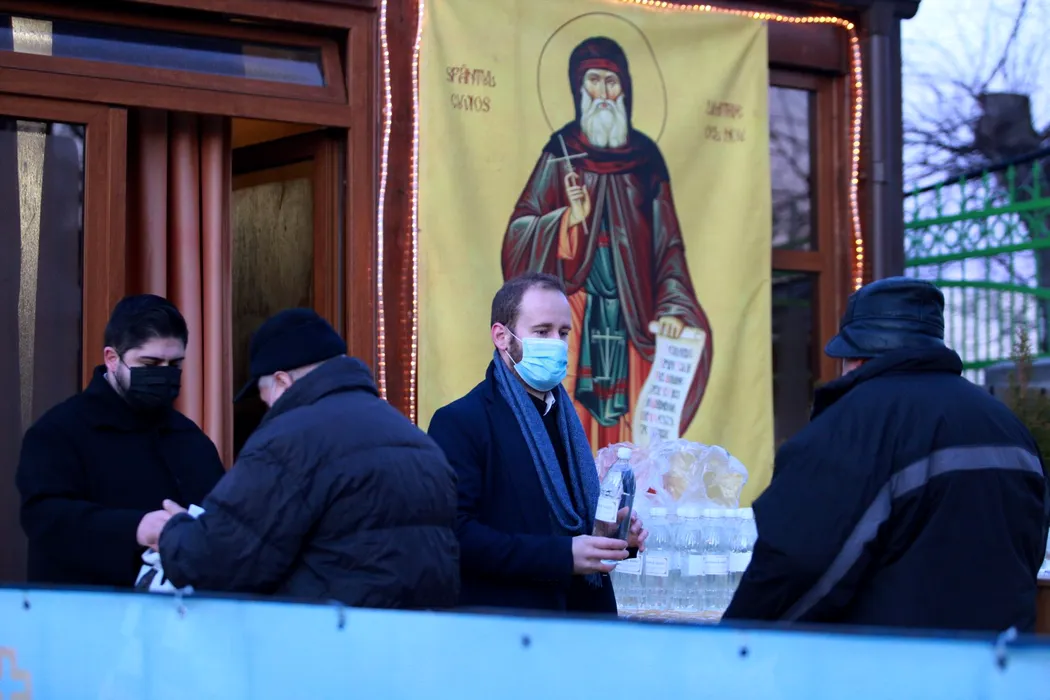 Credincioșii primesc sticle de 1 litru cu Aghiasmă Mare, sfinţită şi îmbuteliată în 5 ianuarie (Ajunul Botezului) / Sursa foto: Alexandra Pandrea