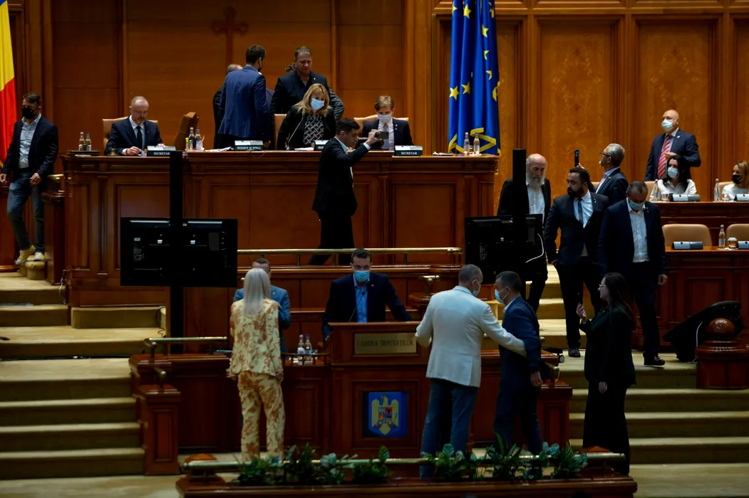 VIDEO| Scandal în Parlament, la citirea moțiunii: Florin Roman, evacuat cu forța de la prezidiu/Deputat AUR: „Băi mafiotule, lasă microfonul!”