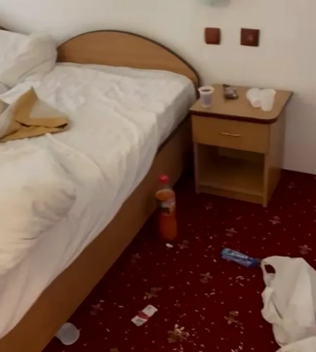 VIDEO și FOTO| O cameră de hotel, devastată de turiști români. Cameristele au găsit televizorul spart și lucrurile distruse