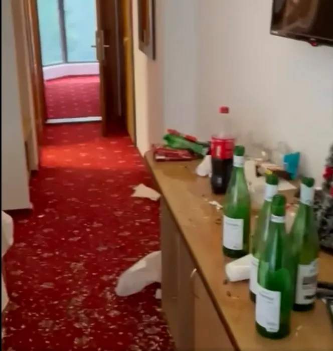 VIDEO și FOTO| O cameră de hotel, devastată de turiști români. Cameristele au găsit televizorul spart și lucrurile distruse