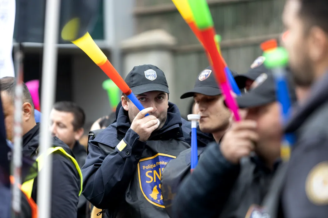 VIDEO | Sindicaliştii din Poliţie şi polițiștii din penitenciare protestează în faţa Ministerului Muncii