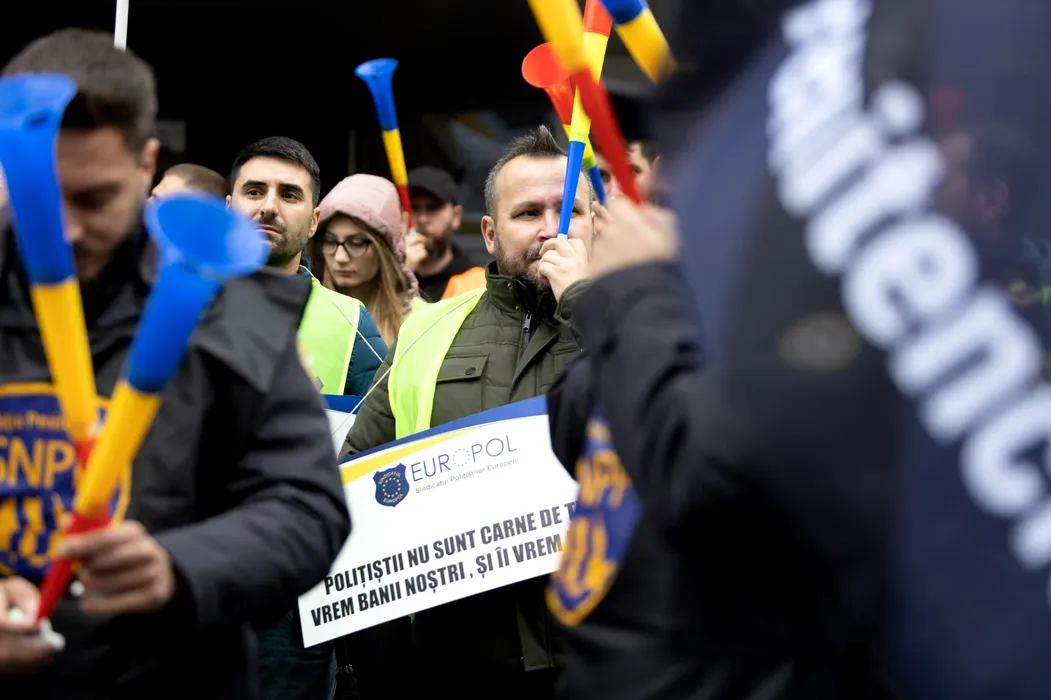VIDEO | Sindicaliştii din Poliţie şi polițiștii din penitenciare protestează în faţa Ministerului Muncii