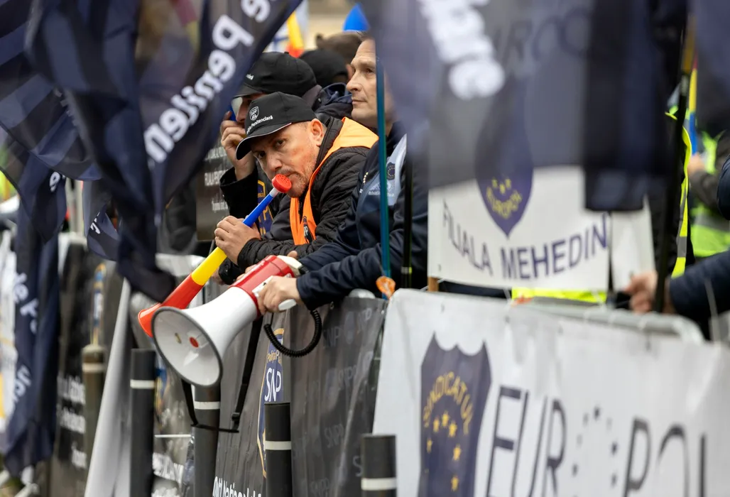 VIDEO | Sindicaliştii din Poliţie şi polițiștii din penitenciare protestează în faţa Ministerului Muncii