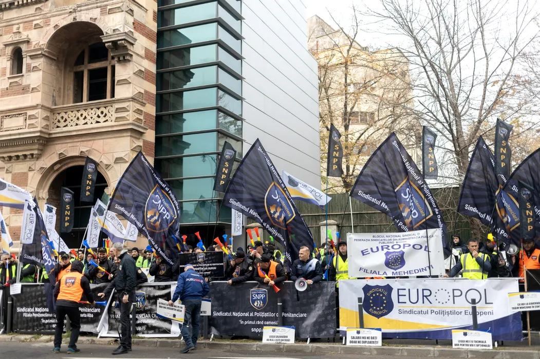 VIDEO | Sindicaliştii din Poliţie şi polițiștii din penitenciare protestează în faţa Ministerului Muncii