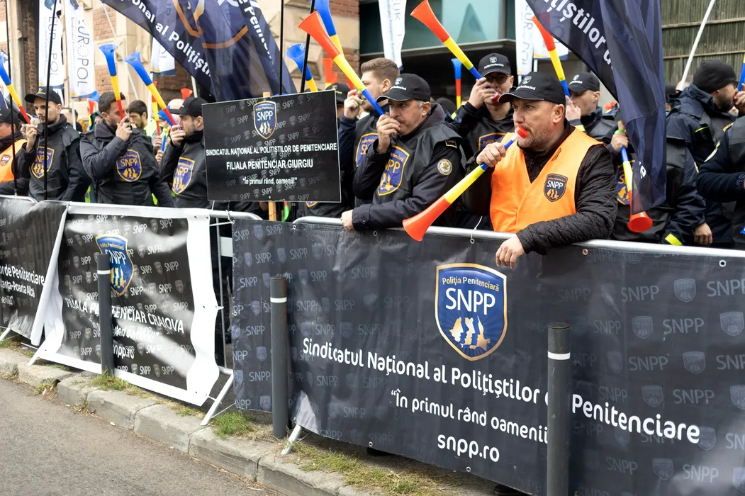 VIDEO | Sindicaliştii din Poliţie şi polițiștii din penitenciare protestează în faţa Ministerului Muncii