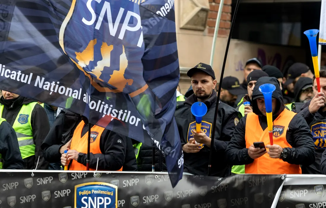 VIDEO | Sindicaliştii din Poliţie şi polițiștii din penitenciare protestează în faţa Ministerului Muncii