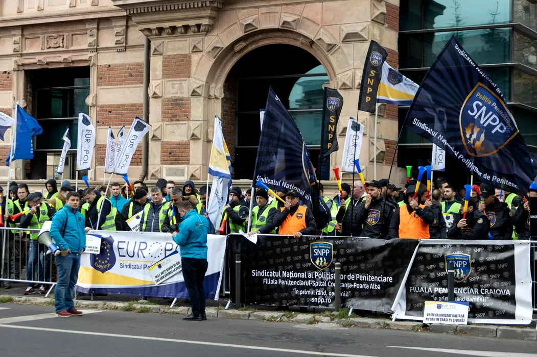 VIDEO | Sindicaliştii din Poliţie şi polițiștii din penitenciare protestează în faţa Ministerului Muncii