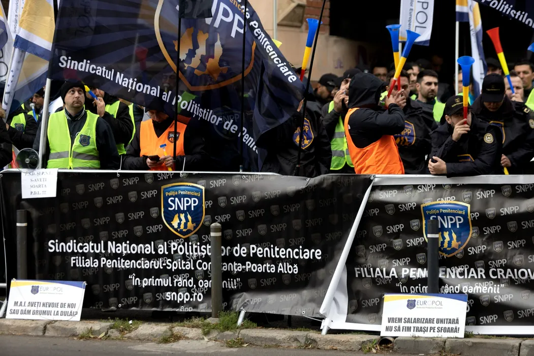 VIDEO | Sindicaliştii din Poliţie şi polițiștii din penitenciare protestează în faţa Ministerului Muncii