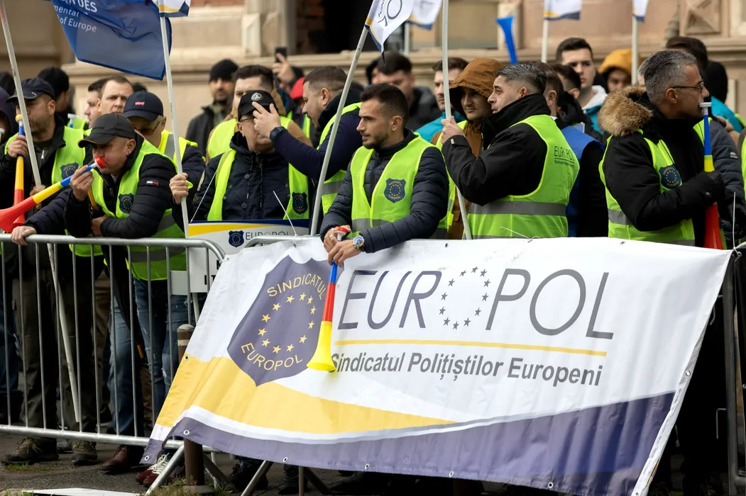 VIDEO | Sindicaliştii din Poliţie şi polițiștii din penitenciare protestează în faţa Ministerului Muncii