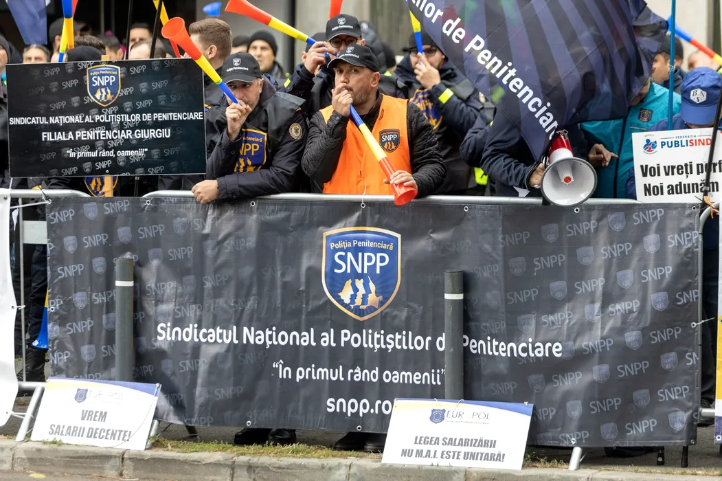 VIDEO | Sindicaliştii din Poliţie şi polițiștii din penitenciare protestează în faţa Ministerului Muncii