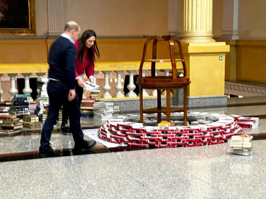 VIDEO | Un brad „Ca la Carte” la Universitatea din Craiova. Studenții și angajații au ridicat un pom de Crăciun din 2023 de cărți