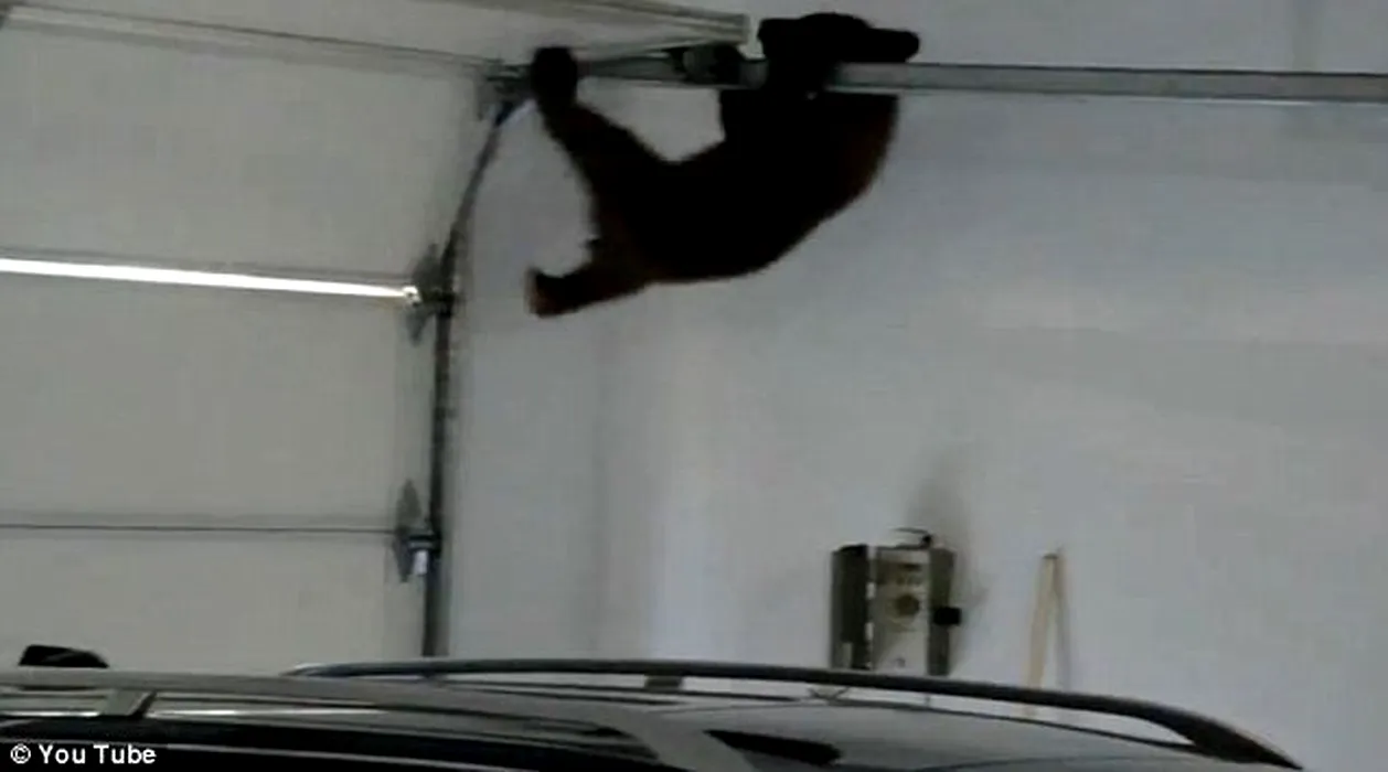 VIDEO. Un pui de urs face acrobații într-un garaj