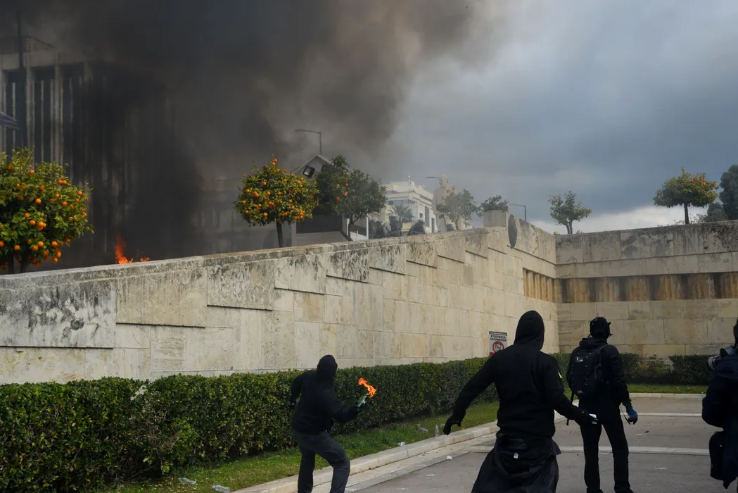 VIOLENȚE la Atena. Sute de mii de oameni au ieșit în stradă pentru a protesta, la doi ani de la cel mai grav accident feroviar din istoria țării