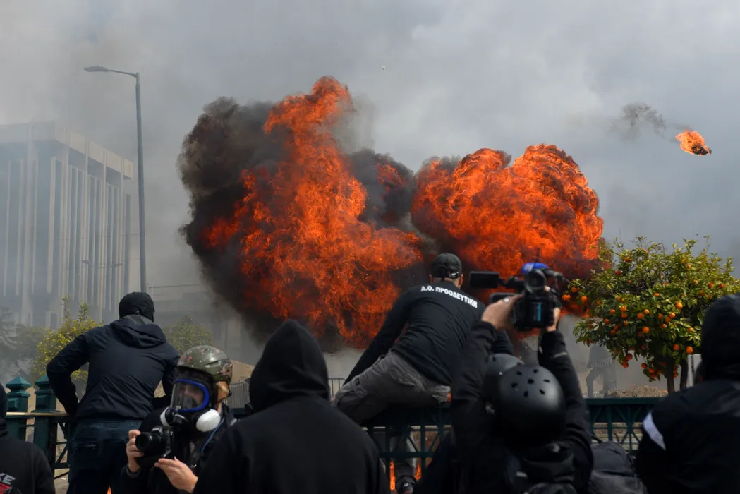 VIOLENȚE la Atena. Sute de mii de oameni au ieșit în stradă pentru a protesta, la doi ani de la cel mai grav accident feroviar din istoria țării