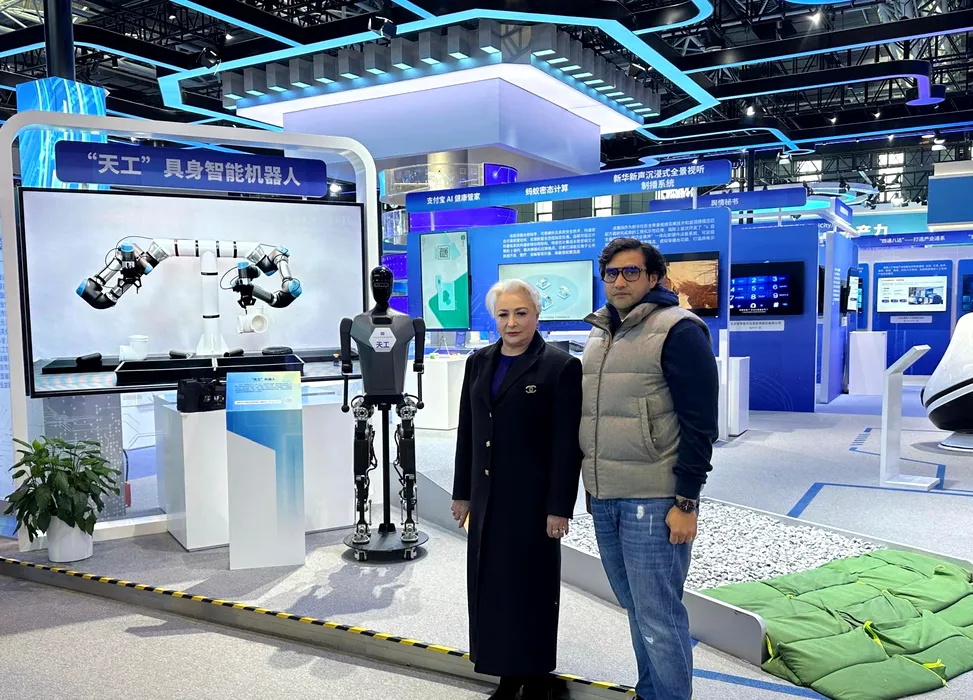 Viorica Dăncilă, din nou în China. De data asta s-a pozat cu ROBOȚI la Z-Park, centrul tehnologic al Beijingului