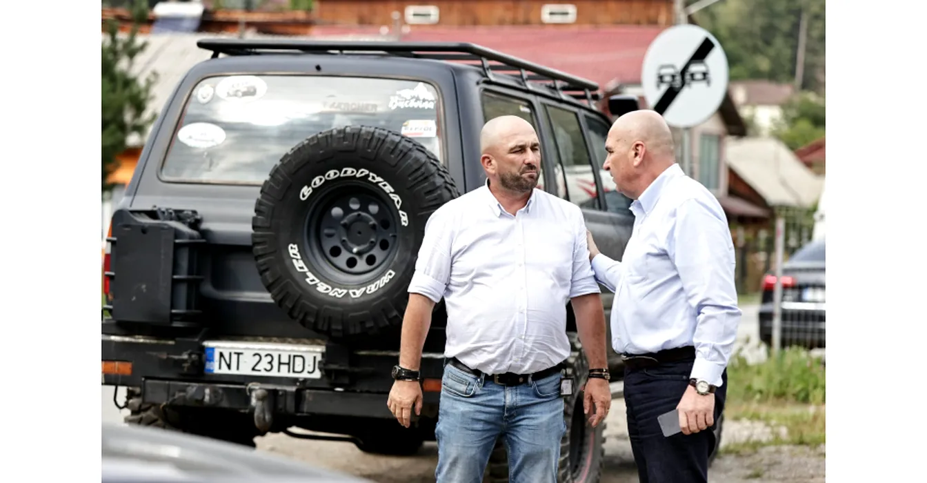 Vizită în BĂTAIE DE JOC a lui Bolojan, la Broșteni. Nu a vorbit cu niciun localnic, nu a vizitat nicio casă. A fost plimbat în grabă de oficialități
