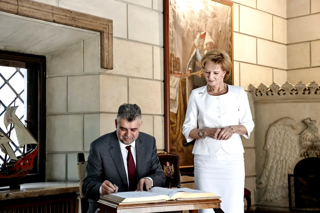 Vizita premierului Marcel Ciolacu la Palatul Elisabeta: „Casa Regală este un reper al patriotismului și al dragostei de țară”
