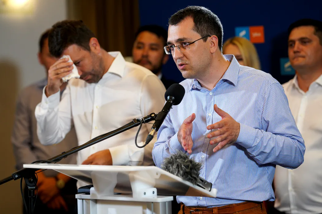 Liderii USR Catalin Drula si Vlad Voiculescu sustin o conferinta de presa legata de conducerea filialei partidului Uniti Salvam Romania (USR), luni, 4 iulie 2022, la Cluj-Napoca. RAUL STEF / MEDIAFAX FOTO
