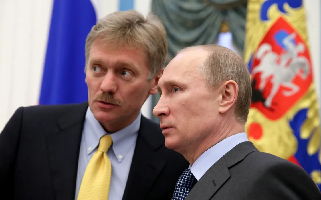 Dmitri Peskov (s), alături de Vladimir Putin | Foto – Profimedia Images