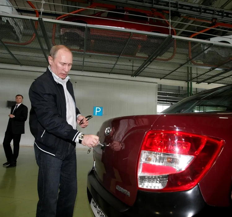Russian Prime Minister Vladimir Putin views a new Lada-Granta car, based on the Lada Kalina model, during his visit at AvtoVAZ plant in Tolyatti, May 11, 2011.,Image: 93857397, License: Rights-managed, Restrictions: Mandatory credit, Editors' note: THIS IMAGE IS PROVIDED BY RUSSIAN STATE-OWNED AGENCY SPUTNIK., Model Release: no, Credit line: Profimedia