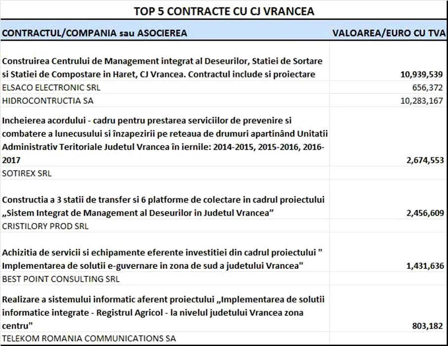 VRANCEA. Unde au mers banii publici în 2014. Topul firmelor care au contracte locale cu statul