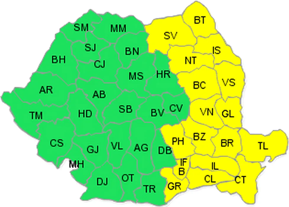 VREMEA. Avertizare de cod galben de ploi torențiale și grindină pentru 17 județe