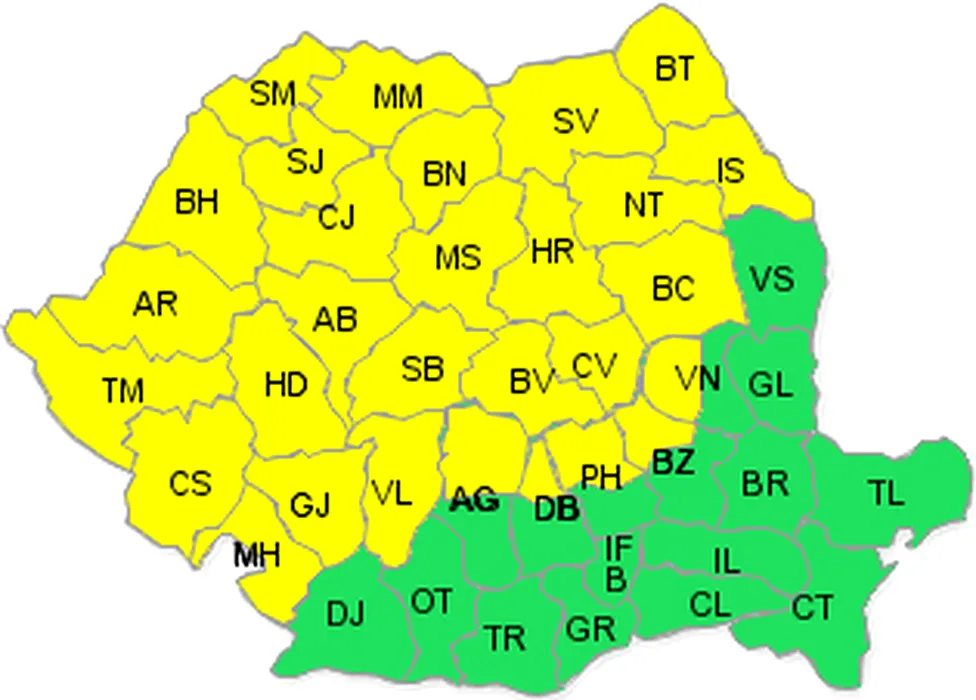 VREMEA. Cod galben de furtună în 29 de județe – HARTA ANM