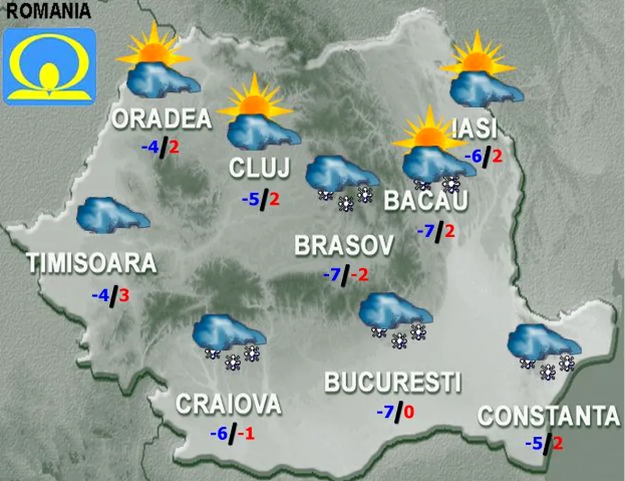 VREMEA. Cod galben de ninsori viscolite pentru jumătatea de sud a țării. Prognoza meteo pentru acest sfârșit de săptămână