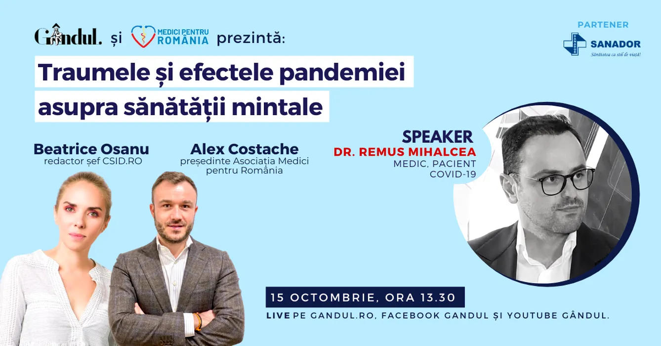 Webinar interactiv „Gândul” și Asociația „Medici pentru România”. COVID-19: Traumele și efectele pandemiei asupra sănătății mintale