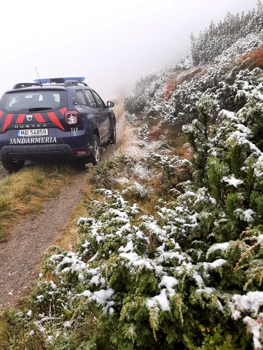 Zăpada a început să se așeze la munte. În masivul Rodna ninge la peste 1.600 metri altitudine. Sfaturile jandarmilor montani – FOTO + VIDEO