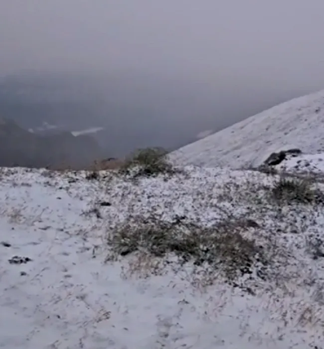 Zăpadă în august, în Munții Bucegi! Imagini spectaculoase cu ninsoarea așternută pe Vârful Omu, la finalul lunii