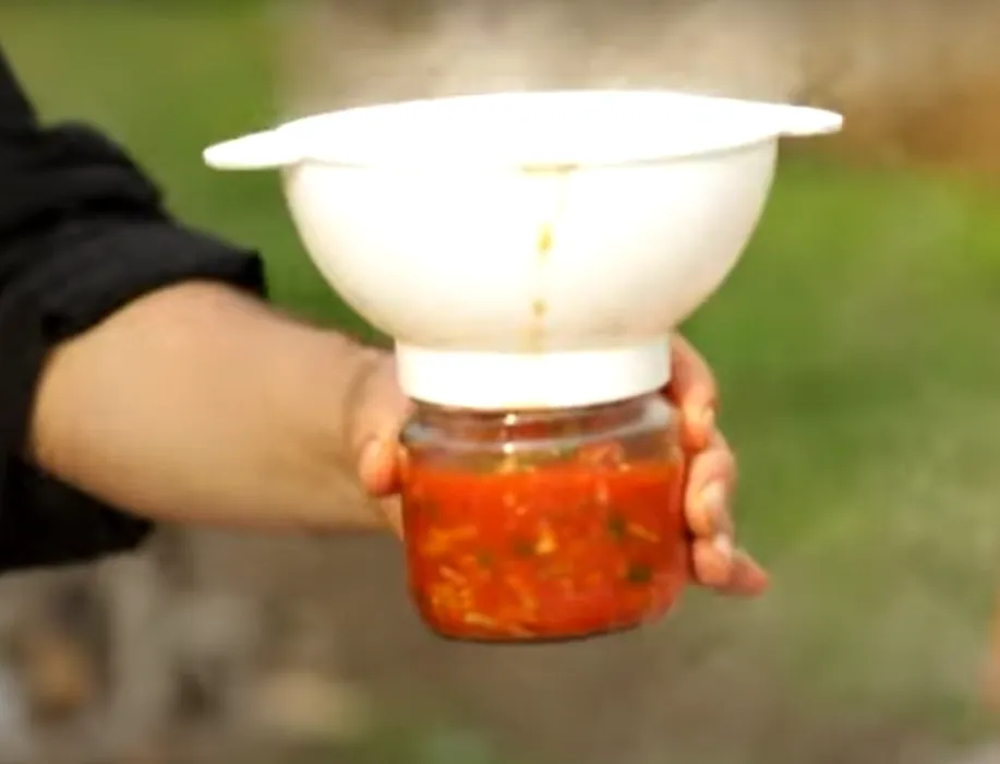 Zarzavatul la ceaun, rețeta Mănăstirii Slănic - conținutul se depozitează în borcane sterilizate / sursă foto: captură video