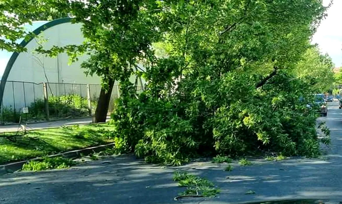 Zeci de copaci rupți de vânt în București, căzuți pe mașini / FOTO