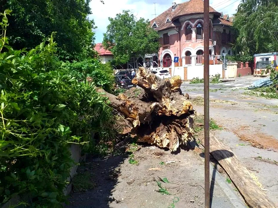 Zeci de copaci rupți de vânt în București, căzuți pe mașini / FOTO
