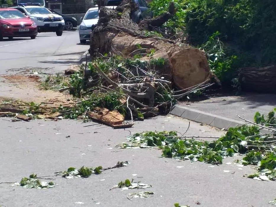 Zeci de copaci rupți de vânt în București, căzuți pe mașini / FOTO