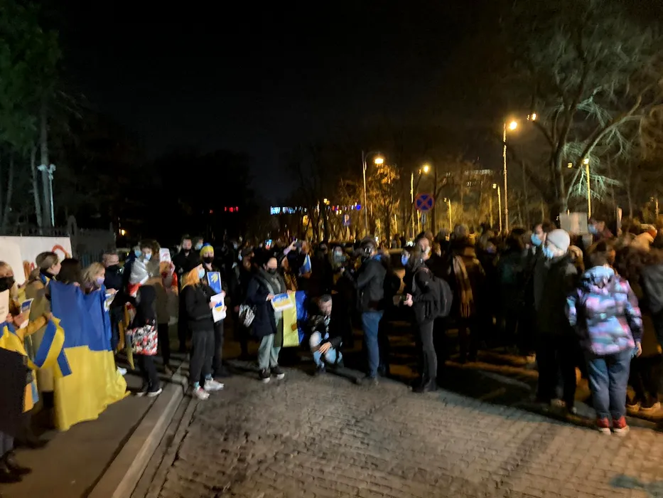 Zeci de persoane participă la o manifestaţie în semn de solidaritate cu poporul ucrainean, la Ambasada Ucrainei din Bucureşti (VIDEO)