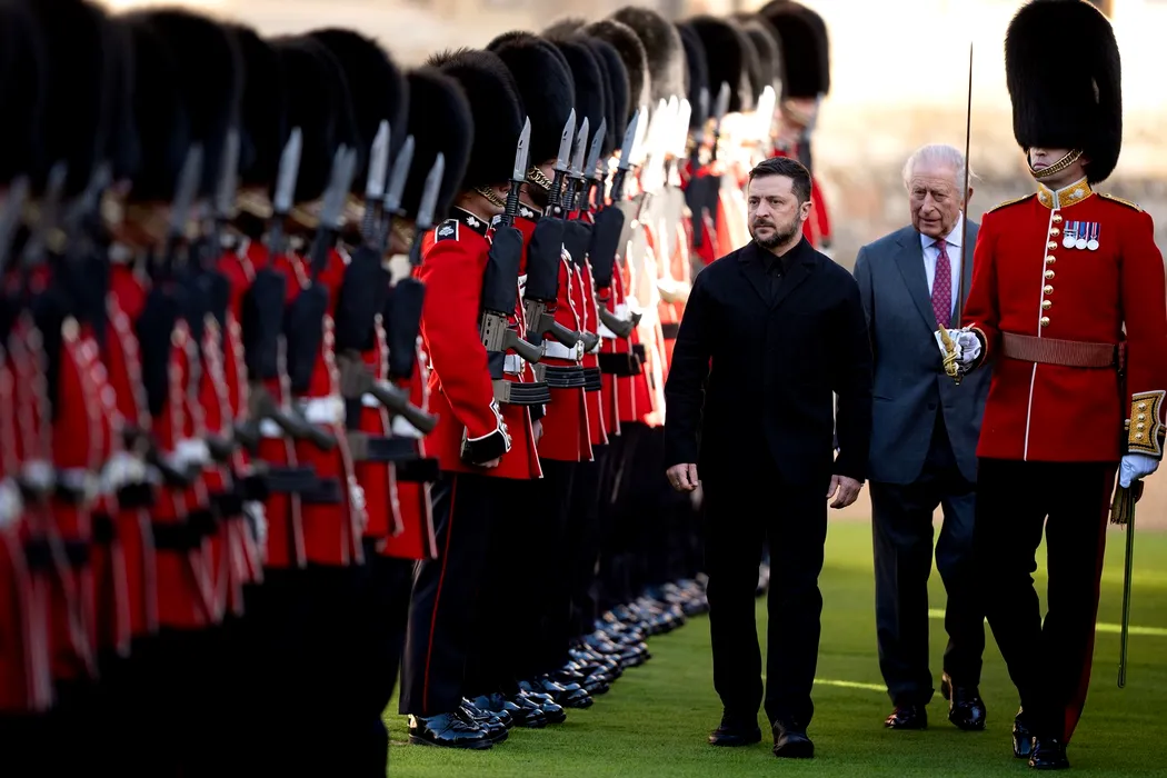 Zelenski este întâmpinat în Marea Britanie de către regele Charles al III-lea și Garda de Onoare, printr-o ceremonie regală cu fast