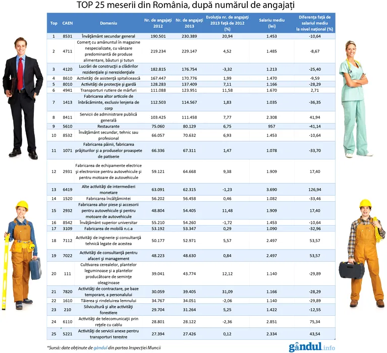ZIUA MUNCII. Cea mai populară meserie din România: peste 230.000 de români o practică. Top 25 meserii după numărul de angajați și ce salarii se câștigă
