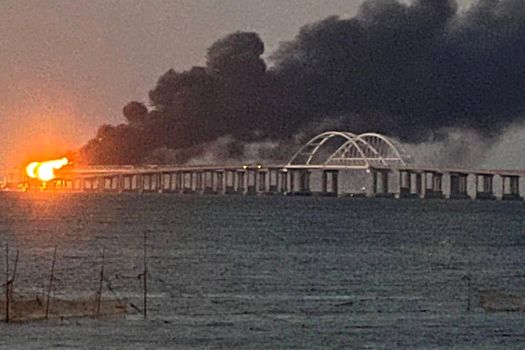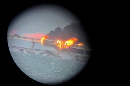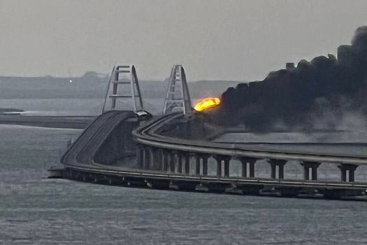 Podul din Crimeea, care leagă peninsula anexată de Vladimir Putin în 2018 de Federația Rusă, arde! Explozii puternice au fost auzite sâmbătă, 8 octombrie, în jurul orelor 6 dimineața, după ce mai multe vagoane-cisternă încărcate cu combustibil au luat foc, circulația pe pod fiind reluată câteva ore mai târziu.