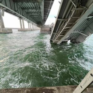 Presa din Ucraina a publicat sâmbătă seară prima fotografie făcută sub podul din Crimeea, care a fost serios avariat de o explozie produsă în dimineața zilei de 8 octombrie.