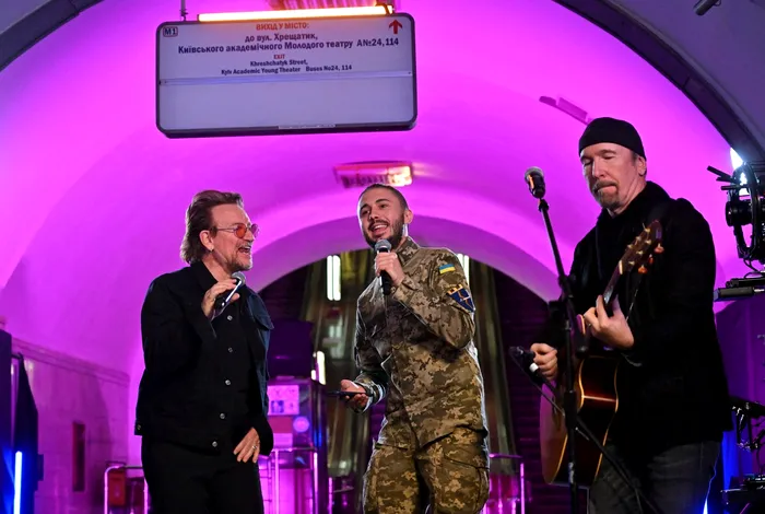 Legendarul artist Bono, solistul trupei U2, și chitaristul David Howell Evans (cunoscut ca The Edge) au improvizat duminică un concert în stația de metrou Hreșciatik din Kiev, potrivit imaginilor apărute pe rețelele sociale.