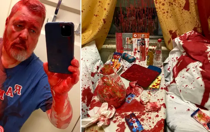 „Au turnat vopsea pe bază de ulei cu acetonă în compartiment. Ochii îmi ard îngrozitor. În trenul de la Moscova la Samara. Plecarea a fost deja amânată cu 30 de minute. Voi încerca să mă spăl”, a spus Dmitri Muratov.