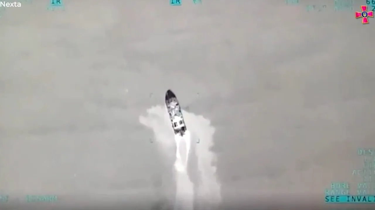 Mai mult, oficialii au postat aici o înregistrare video în care apare drona care a vizat una dintre navele de patrulare Raptor din apropierea insulei din Marea Neagră.