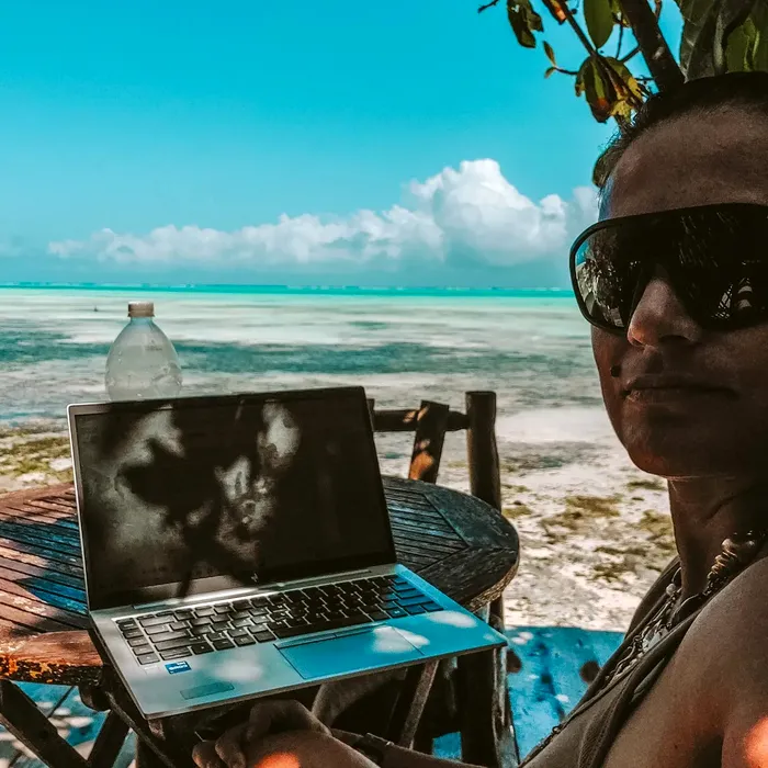 În paralel cu afacerea în turism pe care o are, Cosmina lucrează de la distanță, ca jurist. Sursa foto: Instagram @bronzing_girl