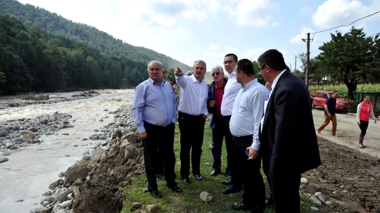 Și premierul vine. Într-o coloană de 10-15 mașini, cu Dragnea, cu primarul, cu prefectul, cu presa. Ridică un val enorm de praf, ignoră lumea care dă la lopată, vorbește cu inginerii și muncitorii, în fața camerelor tv, dă ultime indicații, află amănunte, promite bani „chiar de mâine”, pentru refacerea digurilor.