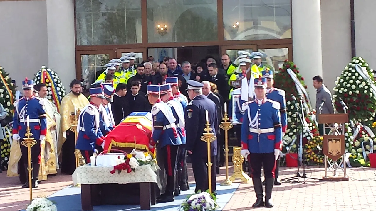 Polițiști cu lacrimi în ochi, unii plângând de-a dreptul în timpul onorurilor militare funebre, cântate de Regimentul de Gardă. Șeful Poliției, Petre Tobă, adus de spate și trist (ni se suflă în cască că este foarte afectat de eveniment și că s-a ocupat personal de organizarea înmormântării). Singurii oficiali de rang înalt de la MAI au fost Gelaledin Nezir, șeful Protocolului, și un subsecretar de stat, Florea Oprea. Gabriel Oprea nu și-a făcut apariția, nici la cimitir, nici la biserică.