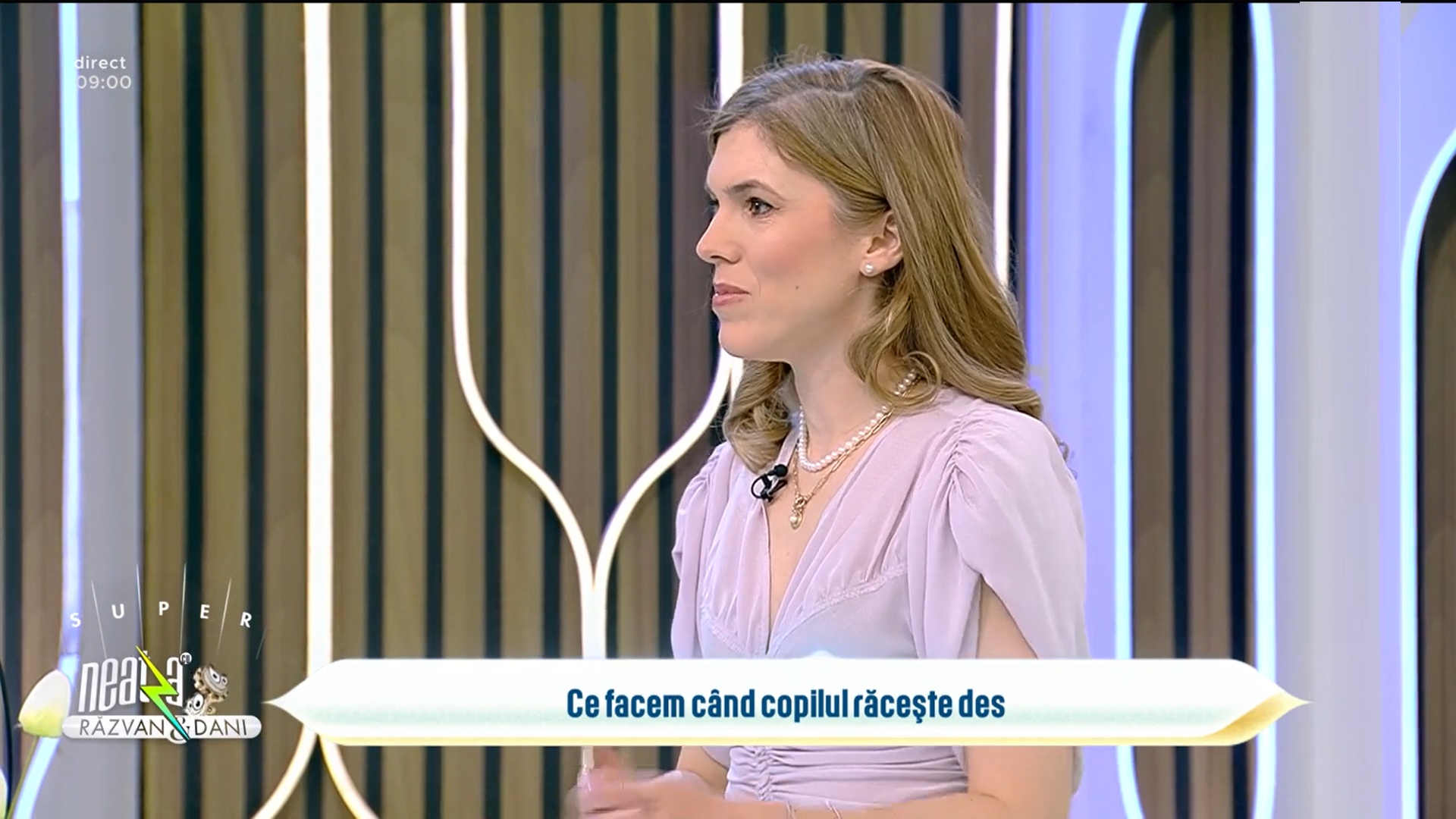 Ilinca Tranulis, medic pediatru și specialist în lactație, a vorbit, la Super Neatza cu Răzvan și Dani, despre măsurile pe care trebuie să le luăm în momentul în care copilul răcește des și când ar trebui să i se facă un test de imunitate.